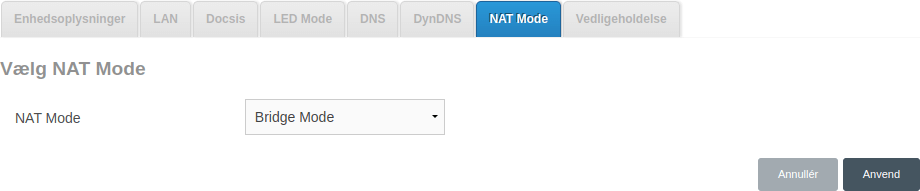 Ændr NAT Mode til Bridge Mode og tryk derefter Anvend.