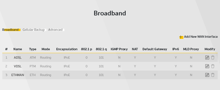 Har du internet via telefonstikket, skal du trykke på papiret med blyanten under Modify i enten VDSL eller ADSL.