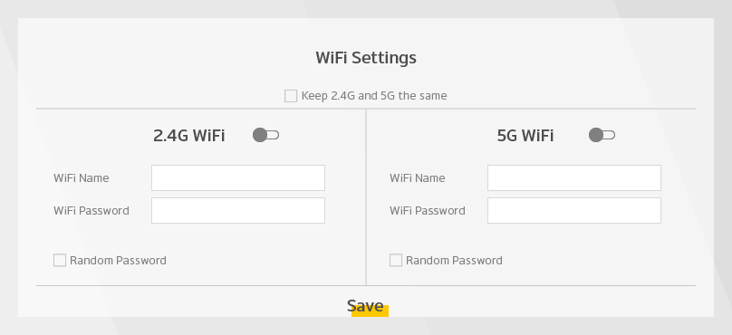 Slå 2.4G WiFi og 5G WiFi fra.