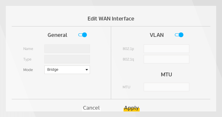 Under General skal du ændre Mode fra Routing til Bridge.