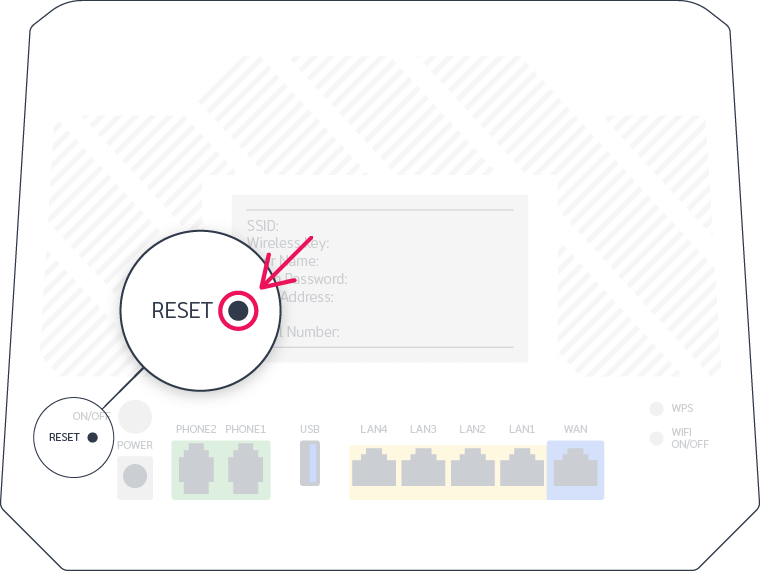 Obs.: Når du nulstiller din router, bliver alle indstillinger på routeren nulstillet. Dit wifi-navn og -kode bliver nulstillet til det, som står bag på routeren.